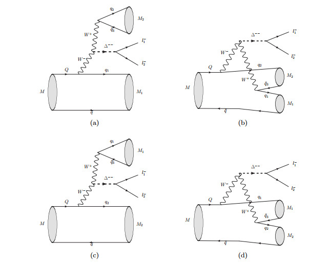 The Lagrangian which describes the interaction between Δ and W− gauge boson or SM fermions has the following form [12, 15]