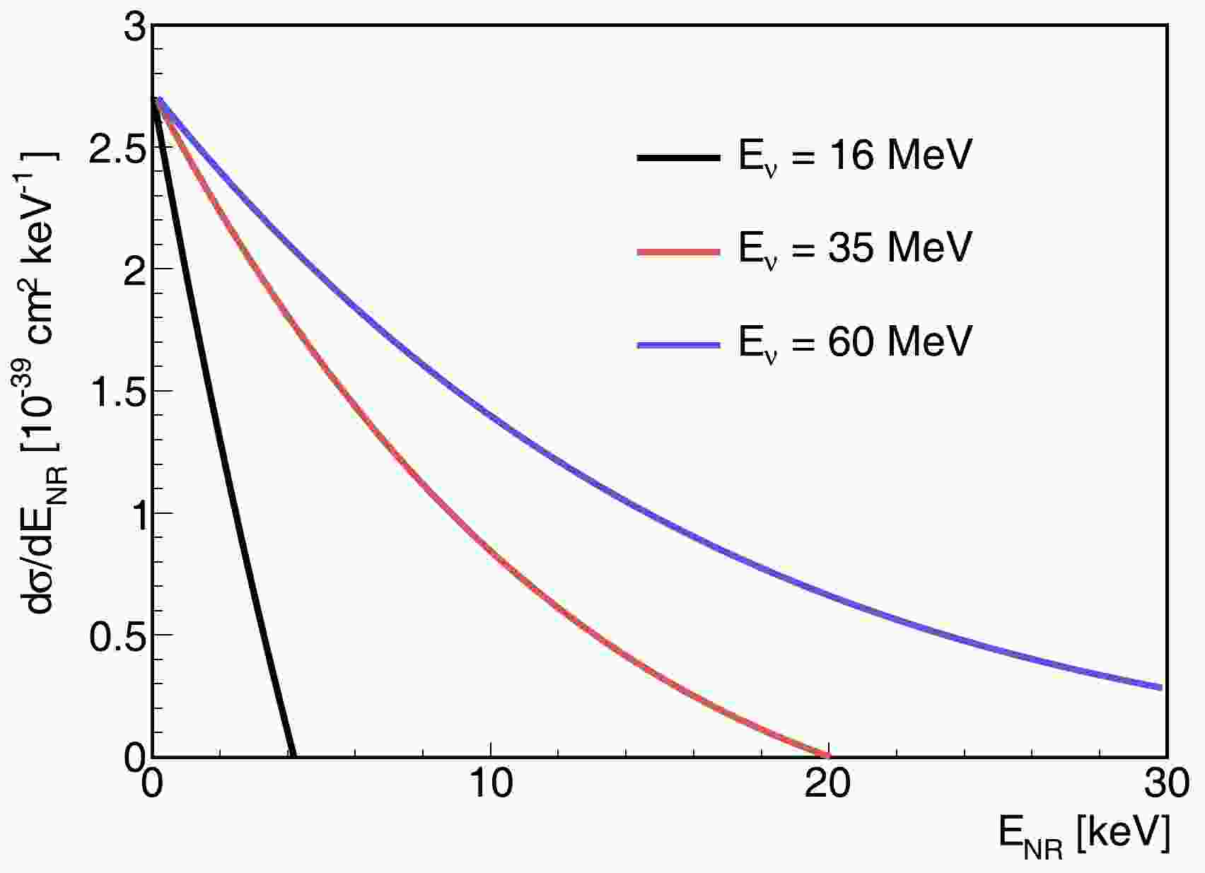 $N_{\rm obs}$ , which is primarily from the high-energy neutrinos (approximately 15 to 30 MeV), as shown in Fig. 2, can be expressed as$ N_{\rm obs}= \int \frac{{\rm d}N}{{\rm d}E_{\rm NR}}(E_{\rm NR}) {\rm d} E_{\rm NR}, $